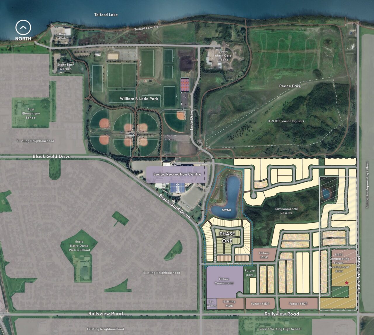 Bordered by Black Gold Drive to the west, Rollyview Road to the south, and the Leduc Recreation Centre/William F. Lede Park to the north, Fraser provides seamless access to everything Leduc has to offer—including quick connections to the QEII Highway.